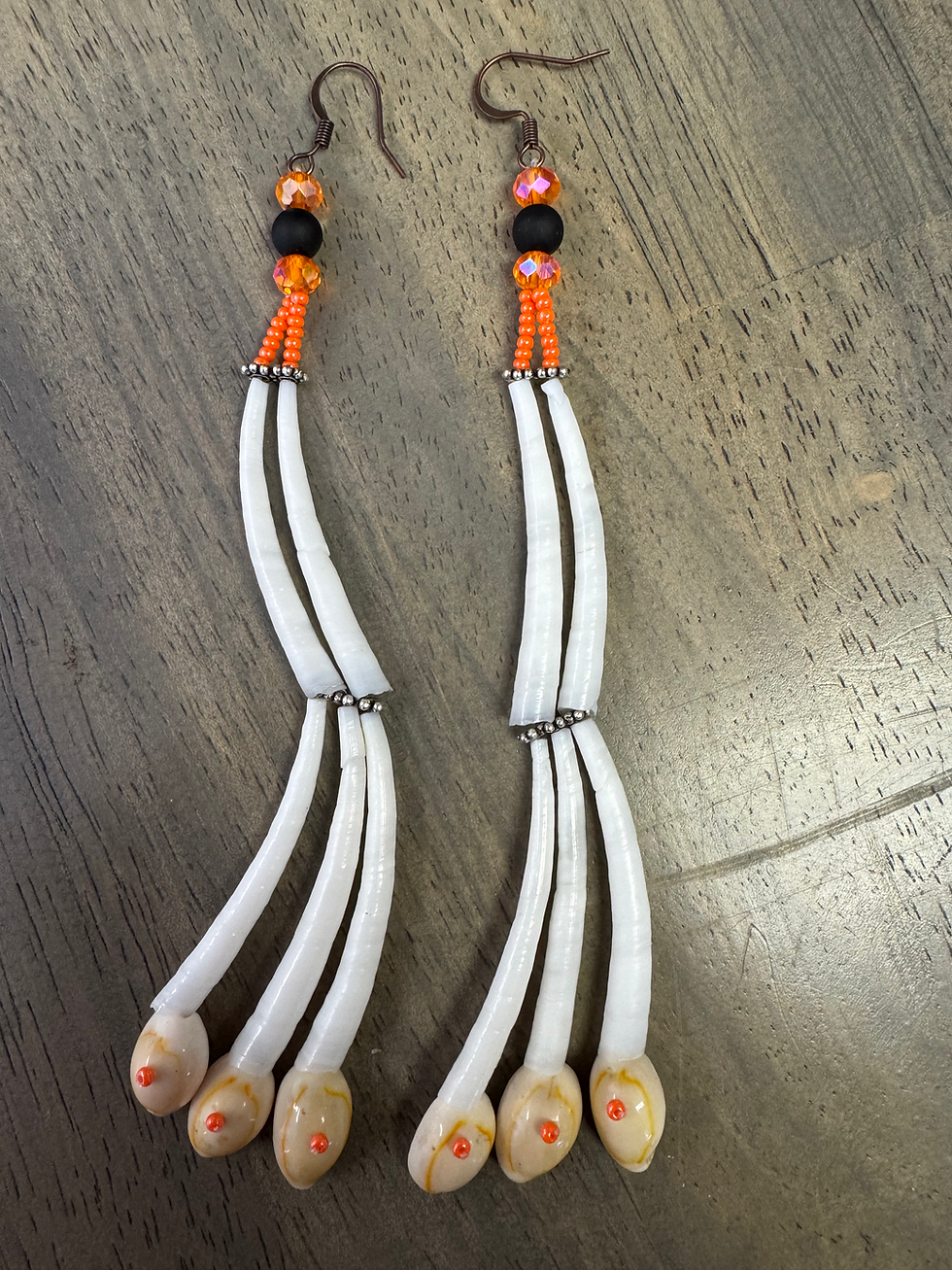 2 Tier Dentillium Shell Earrings with Courie Shells